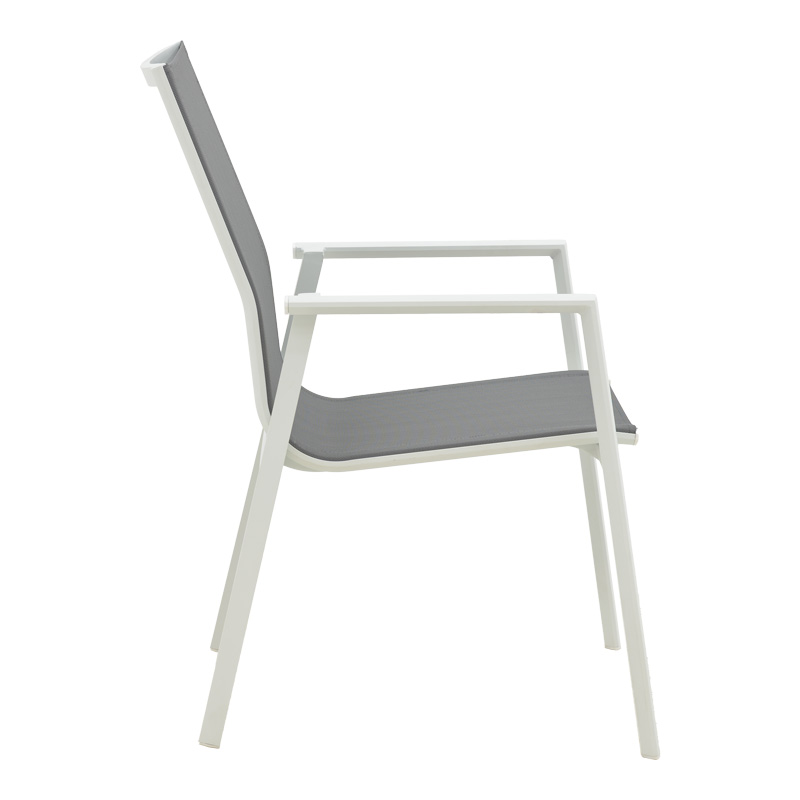 - Σταθερός σκελετός από εξαιρετικής ποιότητας αλουμίνιο με αντοχή στην καταπόνηση και στη φθορά. Κυρίως σώμα καρέκλας από εξαιρετικής ποιότητας textilene. Το textilene είναι ύφασμα μεγάλης αντοχής στην ηλιακή ακτινοβολία και την υγρασία ενώ παράλληλα αφήνει το δέρμα να “αναπνέει” δημιουργώντας έτσι άνεση στο κάθισμα.