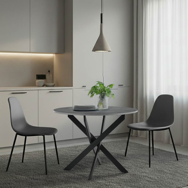 Τραπέζι Dammero pakoworld mdf σε ανθρακί απόχρωση με πόδι μαύρο μέταλλο Φ100×75εκ