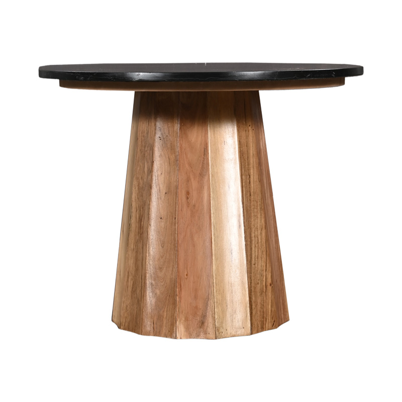 Τραπέζι Ezerdian pakoworld μασίφ ξύλο ακακίας σε φυσική απόχρωση με επιφάνεια μαύρου μαρμάρου Φ120×76εκ