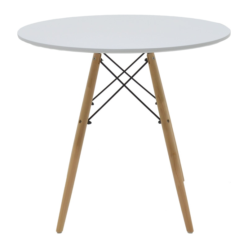 Τραπέζι Julita pakoworld MDF λευκό-πόδια σε φυσική απόχρωση Φ80×73εκ