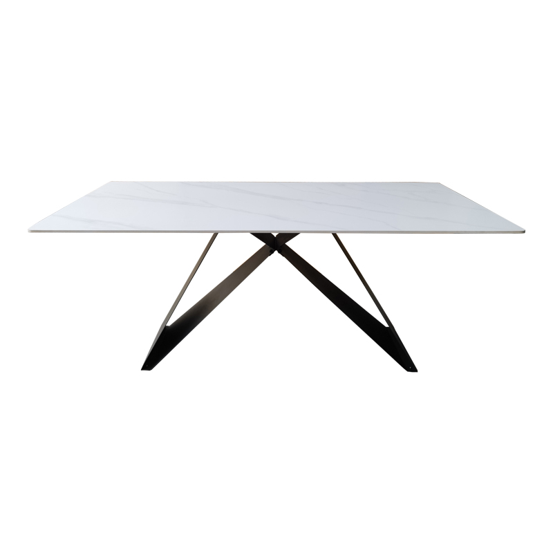 Τραπέζι Mapele pakoworld sintered stone λευκή όψη μαρμάρου με μαύρα μεταλλικά πόδια 180x90x75εκ