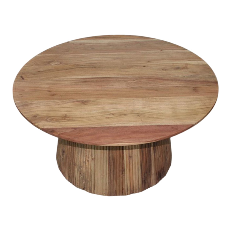 Τραπέζι σαλονιού Canicule I pakoworld μασίφ ξύλο ακακίας σε φυσική απόχρωση Φ80×40εκ