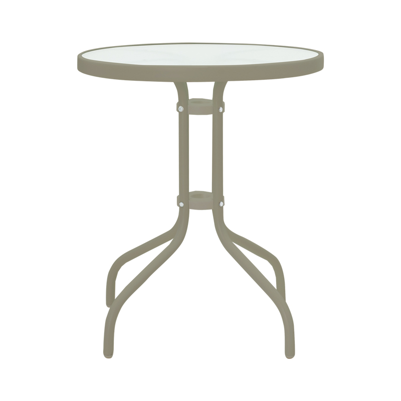Τραπέζι Gaus pakoworld μέταλλο μαύρο-pe γκρι-γυαλί Φ70×74εκ