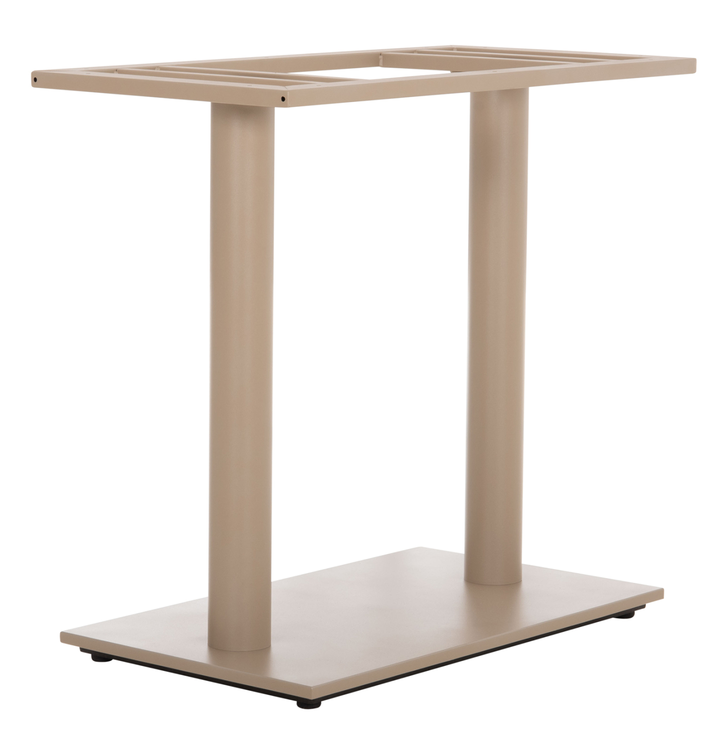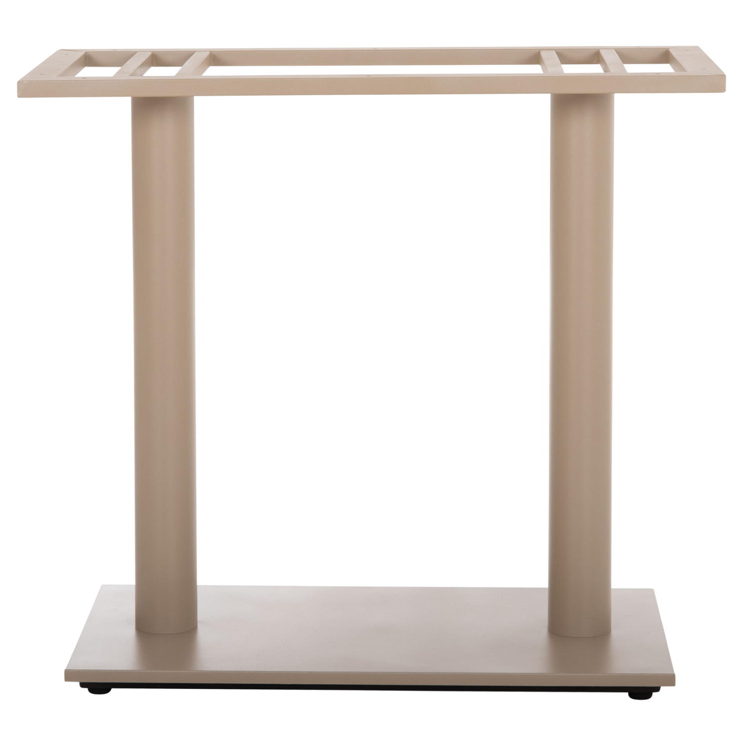 Αυτή είναι μια βάση/πόδια για τραπέζι σε ΚΑΠΟΥΤΣΙΝΟ ΜΑΤ χρώμα. Είναι μεταλλική με δύο κολώνες (πόδια) τα οποία στηρίζονται σε μια επίπεδη μεταλλική επιφάνεια. Το χαρακτηριστικό που κάνει αυτή την βάση ιδιαίτερα πρακτική είναι ότι στο κάτω μέρος της διαθέτει ρυθμιστές ύψους (ρεγουλατόρους). Ιδανική πρόταση για συνδυασμό με επιφάνειες σχεδόν κάθε είδους, όπως βερσαλίτες, HPL, MDF, κτλ.