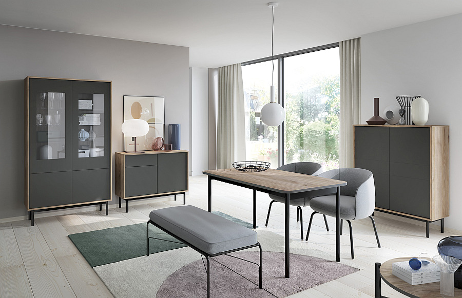 Βιτρίνα Basic Χρώμα: Jackson Hickory +Γραφίτης 104x185x39cm