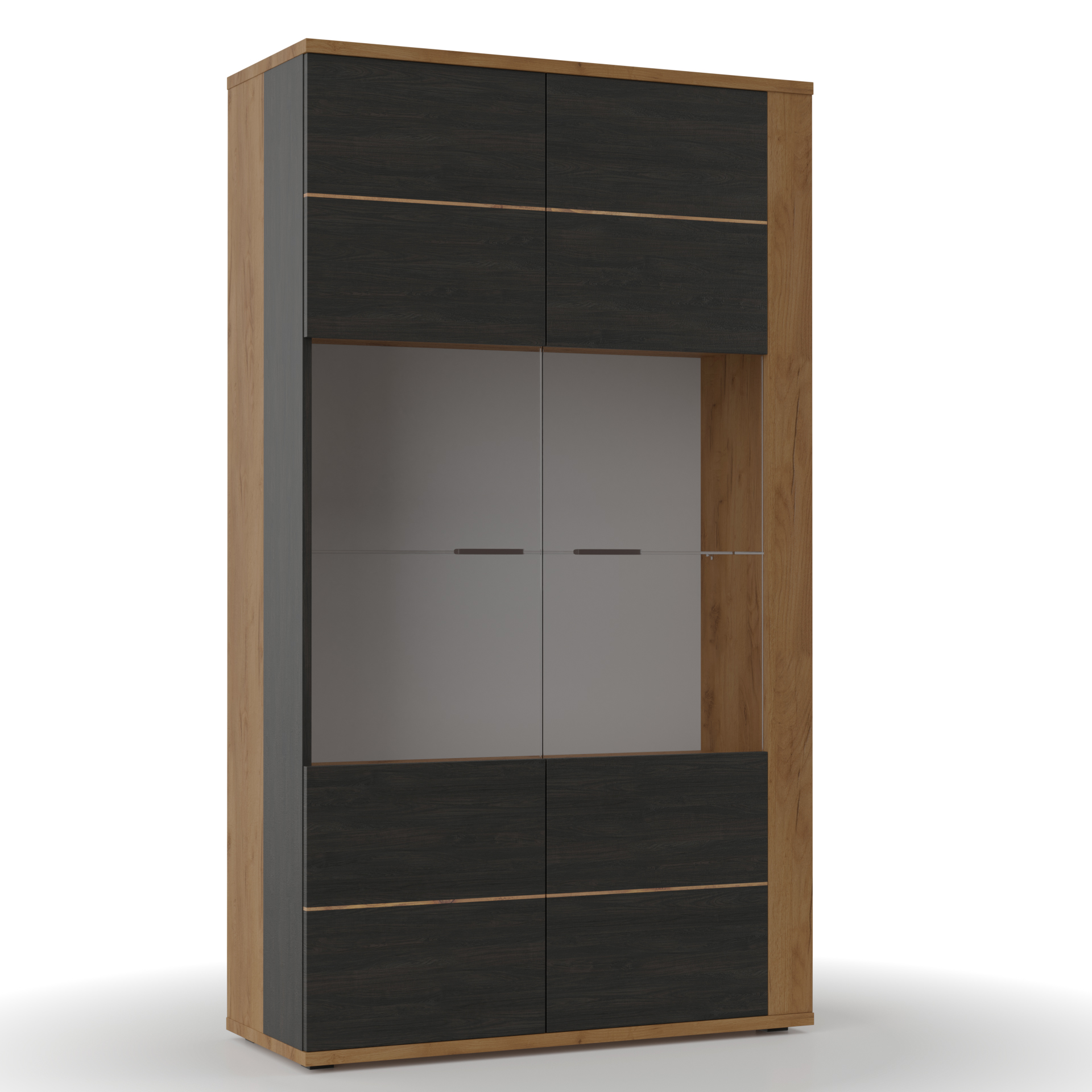 Βιτρίνα ADEL, Η αντισυμβατική σχεδίαση με αυστηρές γεωμετρικές γραμμές το κάνει ξεχωρίζει από άλλα έπιπλα και δίνει στο χώρο ζεστασιά, σε αυτό συμβάλλει και ο πρωτότυπος χρωματισμός του με Χρώμα Καπνού (tobacco) και γκρι (Northern tree) και τα λιτά Μαύρα χερούλια , η διάσταση είναι 95.1×39.6×167.5.