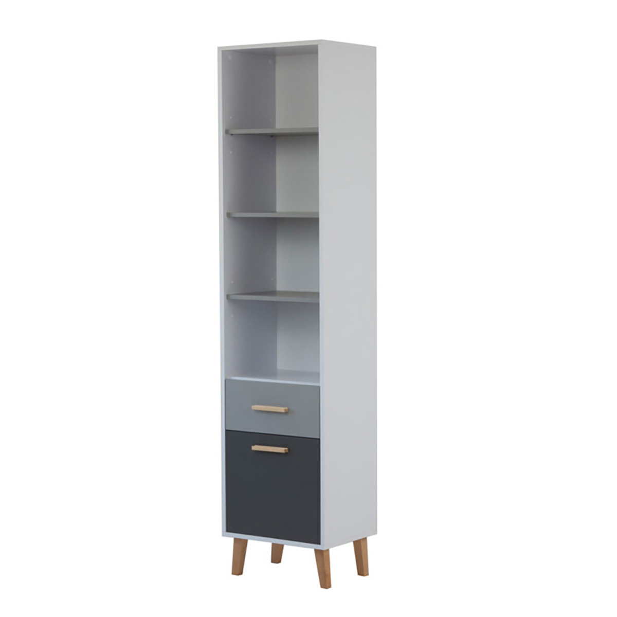 Βιβλιοθήκη Timmy, εξαιρετικής ποιότητας και υψηλής αντοχής, σε ιδιαίτερο συνδυασμό τριών χρωμάτων λευκό, γραφίτη, γκρι.