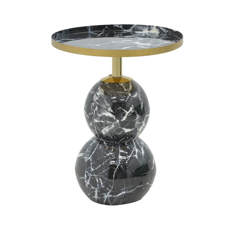 Βοηθητικό τραπέζι Dearest Inart μαυρο μαρμάρου-χρυσό μέταλλο Φ41×57εκ