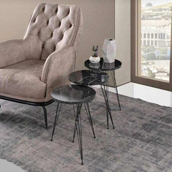 Βοηθητικά τραπέζια Perjene pakoworld σετ 3τεμ μελαμίνη σε λευκή απόχρωση και ξύλινα πόδια