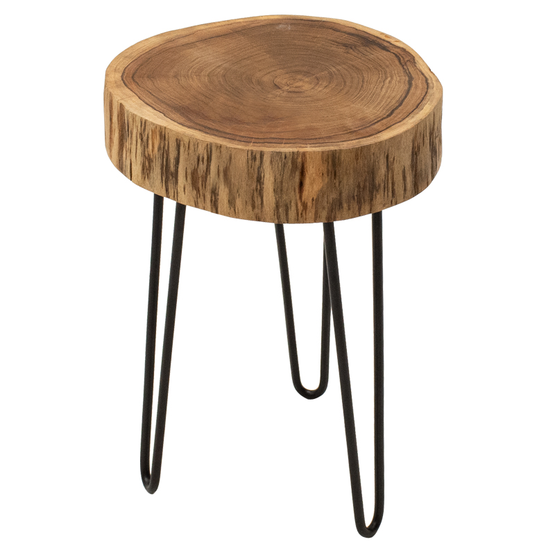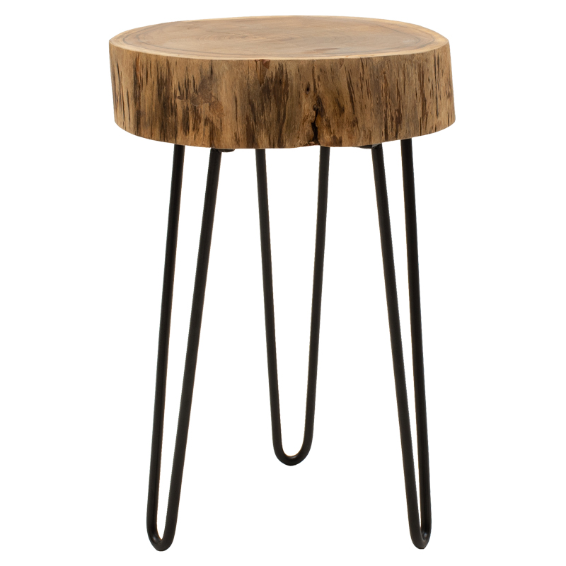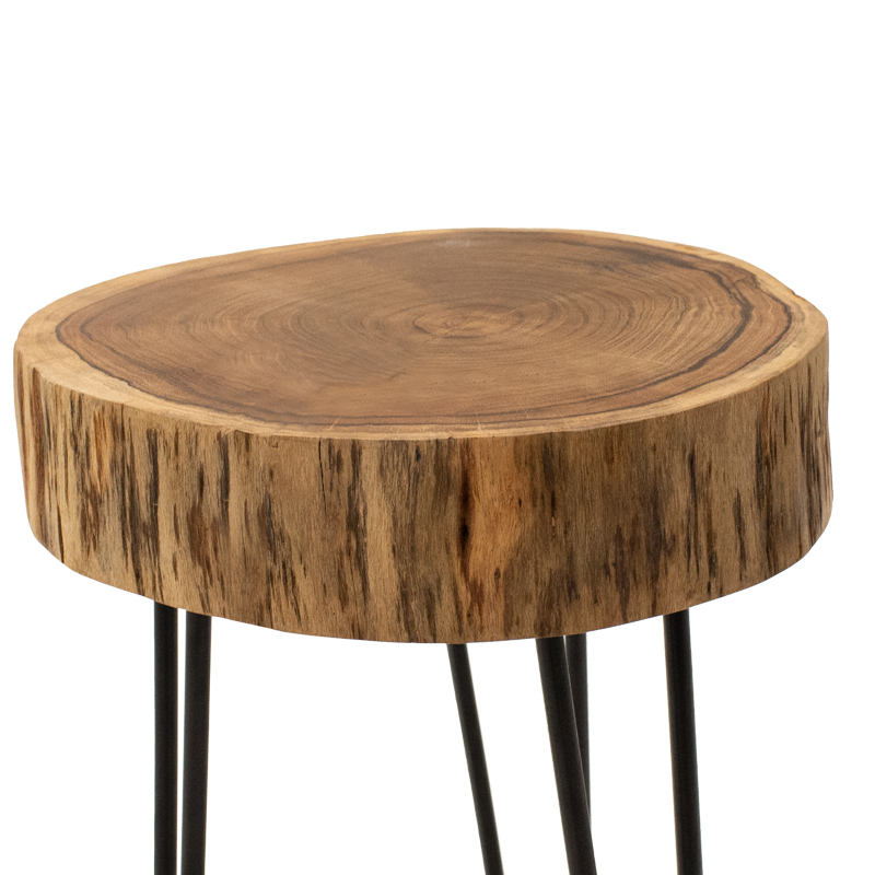 Βοηθητικό τραπέζι Tripp Ι pakoworld μασίφ ξύλο ακακίας σε φυσική απόχρωση-μαύρα μεταλλικά πόδια Φ32×47εκ