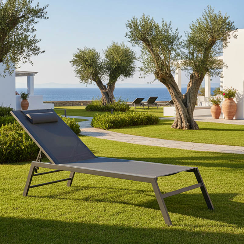 Ξαπλώστρα Kiara pakoworld αλουμίνιο-textilene ανθρακί στοιβαζόμενη
