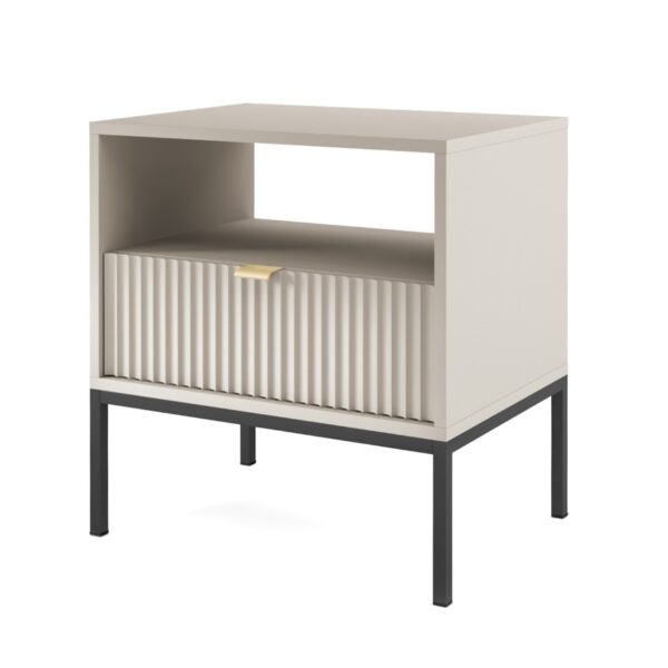 Κομοδίνο Naida pakoworld σε λευκή απόχρωση -μαύρα μεταλλικά πόδια 40x30x59εκ